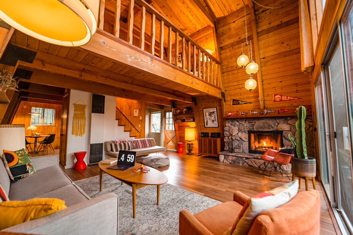 Back deck to the National Forest—minutes to ski slopes and the Village. Big Bear Treehouse is a tastefully upgraded mid-century modern cabin with vintage character, a wrap-around deck, and walk-off access to miles of forest trails. (Featured in The Cabin Chronicles S1E8—available on streaming platforms.)
